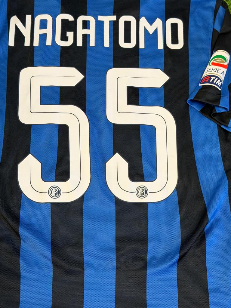 Maglia dell'Inter Home di Nagatomo della stagione 2015/2016, versione Player Issued prodotta da Nike con patch ufficiale della Serie A.