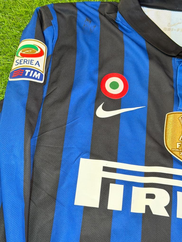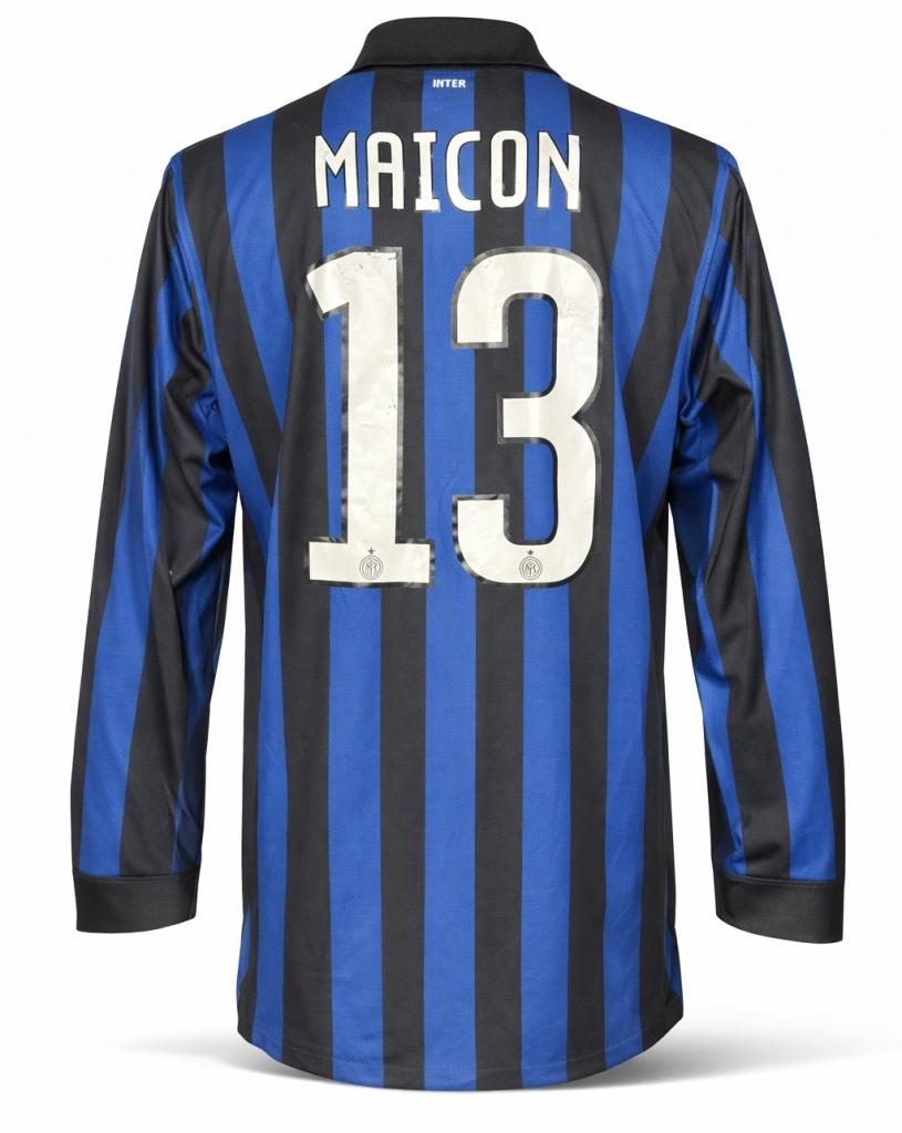 Maglia home dell’Inter della stagione 2011/12 versione Player Issued a manica lunga di Maicon con patch ufficiali sulla manica e sul petto.