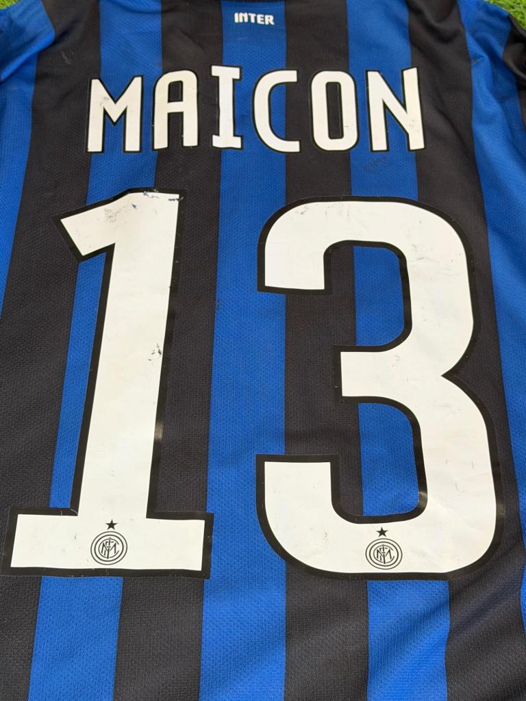 Sul retro nameset MAICON con numero 13. Versione Player Issued con etichetta interna “Authentic”, materiali tecnici Dri-Fit e costruzione con pannelli traspiranti e dettagli professionali da campo, tipici delle forniture ai giocatori.