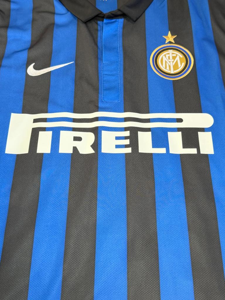 Divisa Home nerazzurra caratterizzata da classiche bande verticali nere e blu, con design pulito e colletto a polo che richiama uno stile più tradizionale rispetto alla versione da campo. Presenta sponsor tecnico Nike e sponsor commerciale Pirelli, con crest Inter arricchito dalla stella dorata.