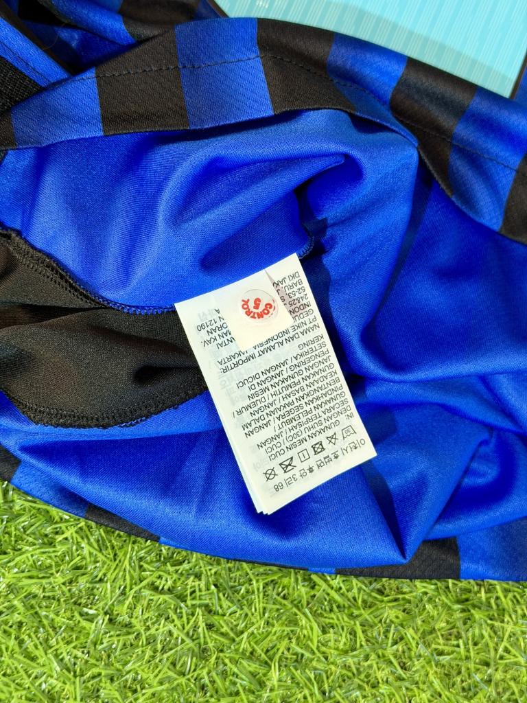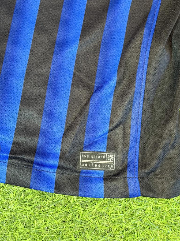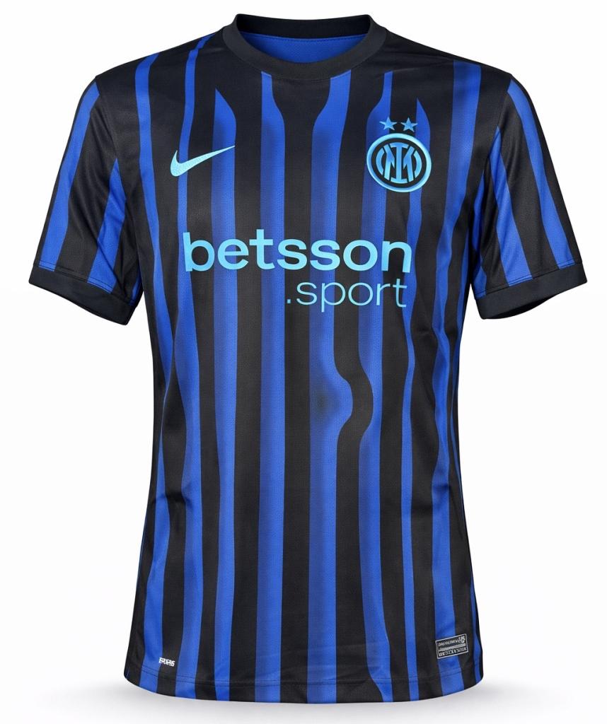 Divisa Home realizzata da Nike per la stagione 2025/2026, caratterizzata da una reinterpretazione moderna delle classiche strisce nerazzurre con pattern ondulato verticale. Sul petto sono presenti il logo Nike e lo sponsor commerciale Betsson.sport, mentre lato cuore troviamo lo stemma del club in versione monocromatica con doppia stella.