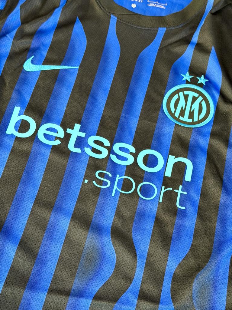 Maglia home dell’Inter della stagione 2025/2026 con nameset Thuram 9 e sponsor Betsson.sport. Versione store.