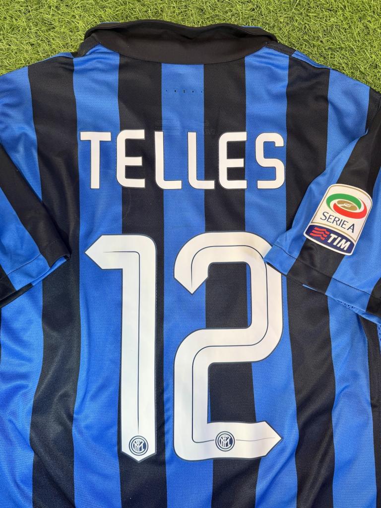 Maglia home dell’Inter stagione 2015/2016 con nameset Telles 12 e sponsor Pirelli, versione Player Issued con patch ufficiale Serie A.