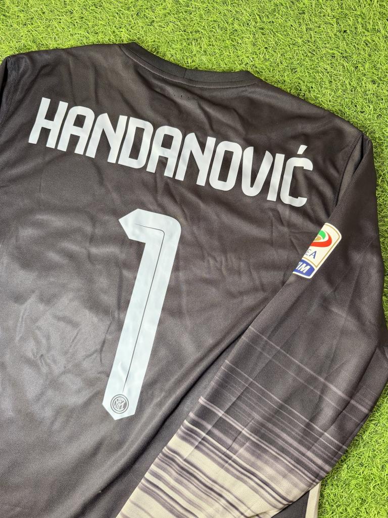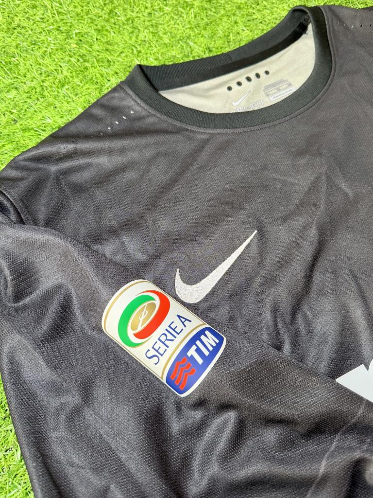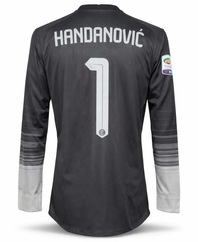 La maglia presenta maniche lunghe, inserti traforati per la ventilazione e tecnologia Dri-FIT con costruzione tecnica leggera. Sul retro è applicato il nameset Handanovi? 1 in bianco, con patch Serie A TIM sulla manica. Versione Player Issued, con materiali professionali, vestibilità slim e dettagli tecnici utilizzati in campo.