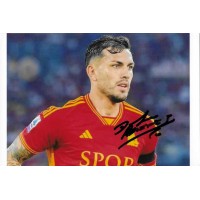 Autografo di Leandro Paredes su fotografia a colori che lo ritrae in campo con maglia dell’Associazione Sportiva Roma, durante una fase di gioco. Firma apposta in pennarello nero sulla parte destra dell’immagine.