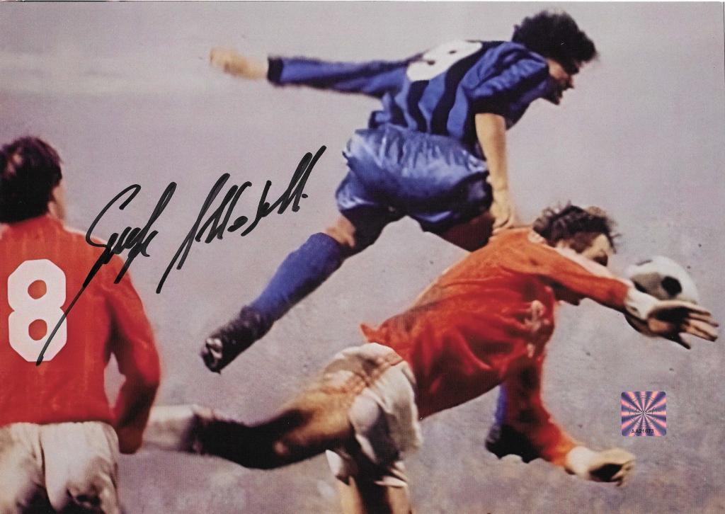 Autografo di Alessandro Altobelli su foto con maglia Inter. Cimelio del campione del mondo 1982 e storico attaccante nerazzurro.