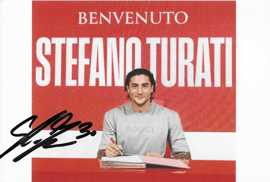 Autografo di Stefano Turati su fotografia durante firma contratto. Cimelio legato al calcio italiano e alla carriera del portiere.