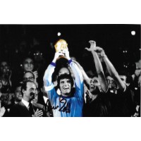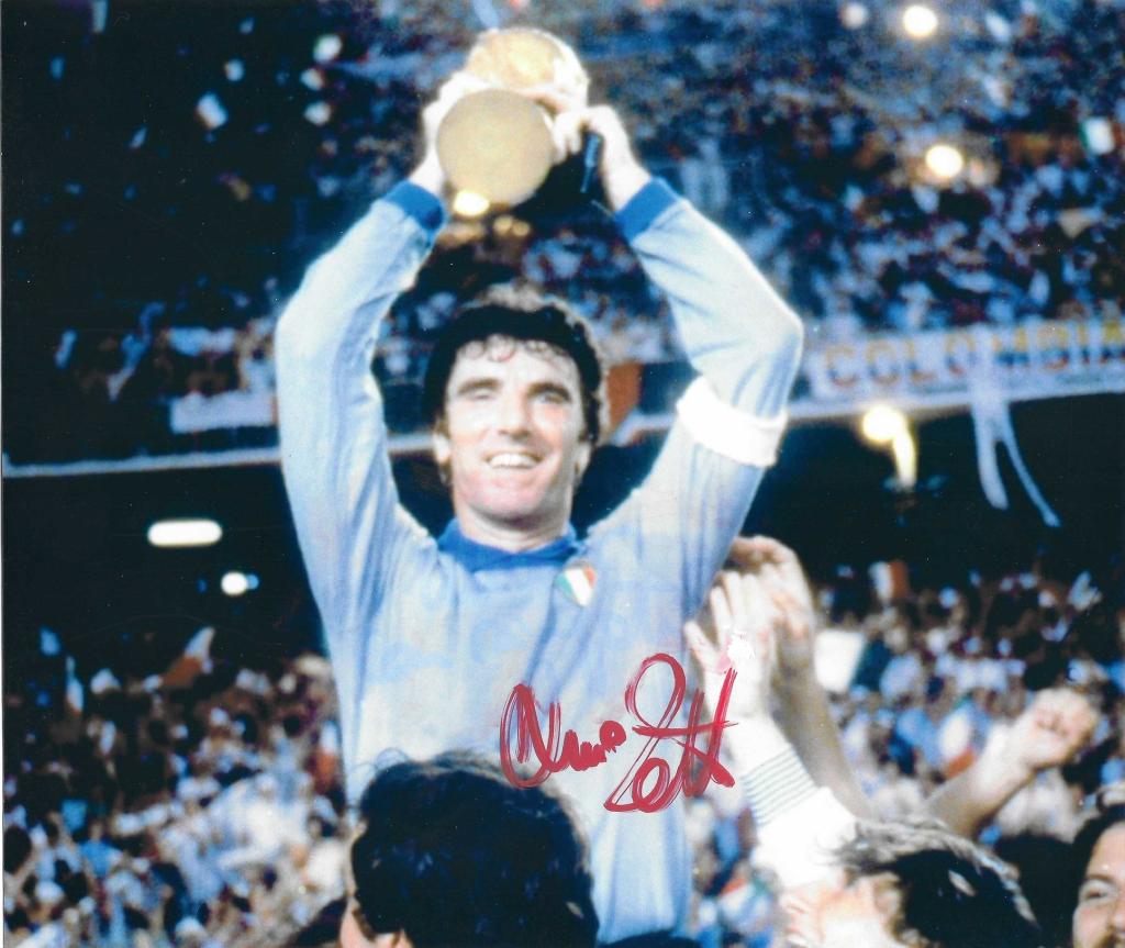 Autografo di Dino Zoff su fotografia con trofeo Nazionale Italia