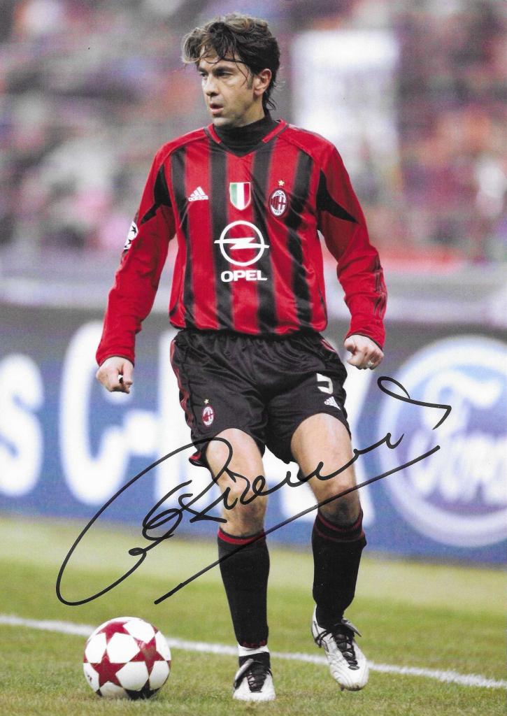 Autografo di Alessandro Costacurta su fotografia che lo ritrae in azione con la maglia del Milan durante una partita.