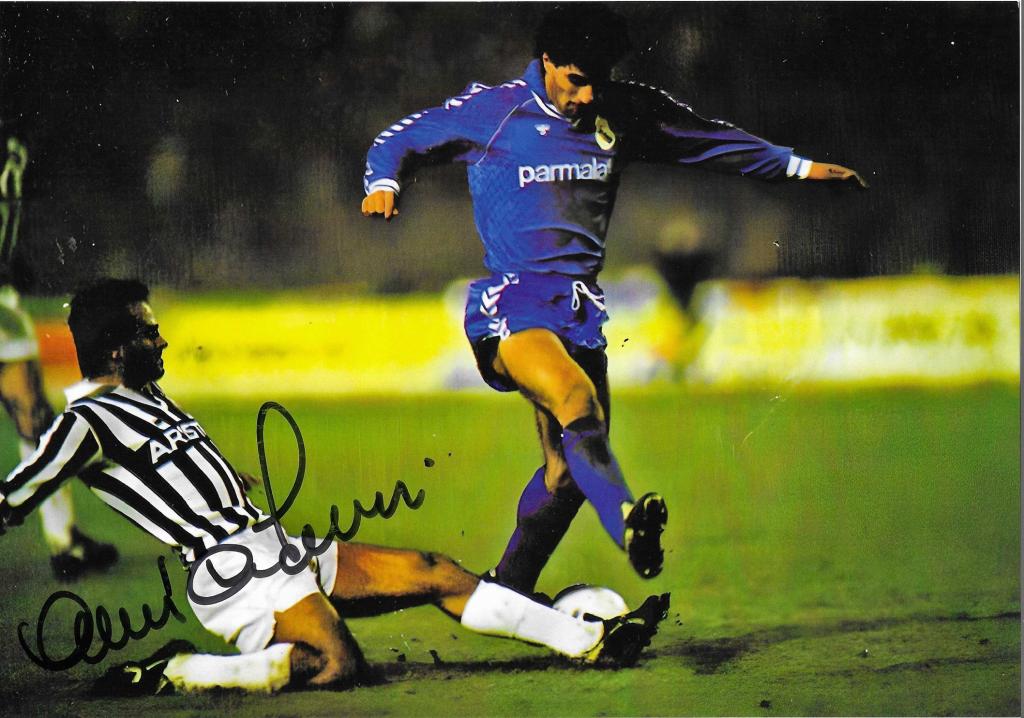 Autografo di Antonio Cabrini su fotografia in azione di gioco