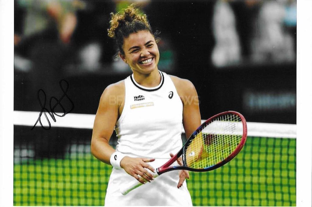 Autografo di Jasmine Paolini su fotografia in campo
