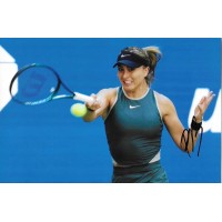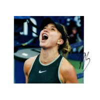Autografo di Paula Badosa su fotografia a colori che la ritrae in azione durante uno scambio in campo. Firma apposta frontalmente con pennarello nero.