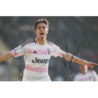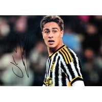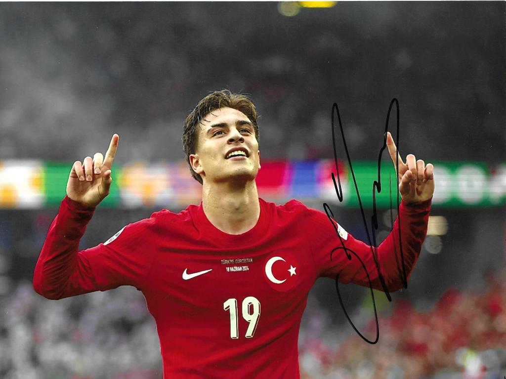 Autografo di Kenan Yildiz, talento della Juventus e della Turchia. Fotografia esultanza Euro 2024 firmata in pennarello nero.