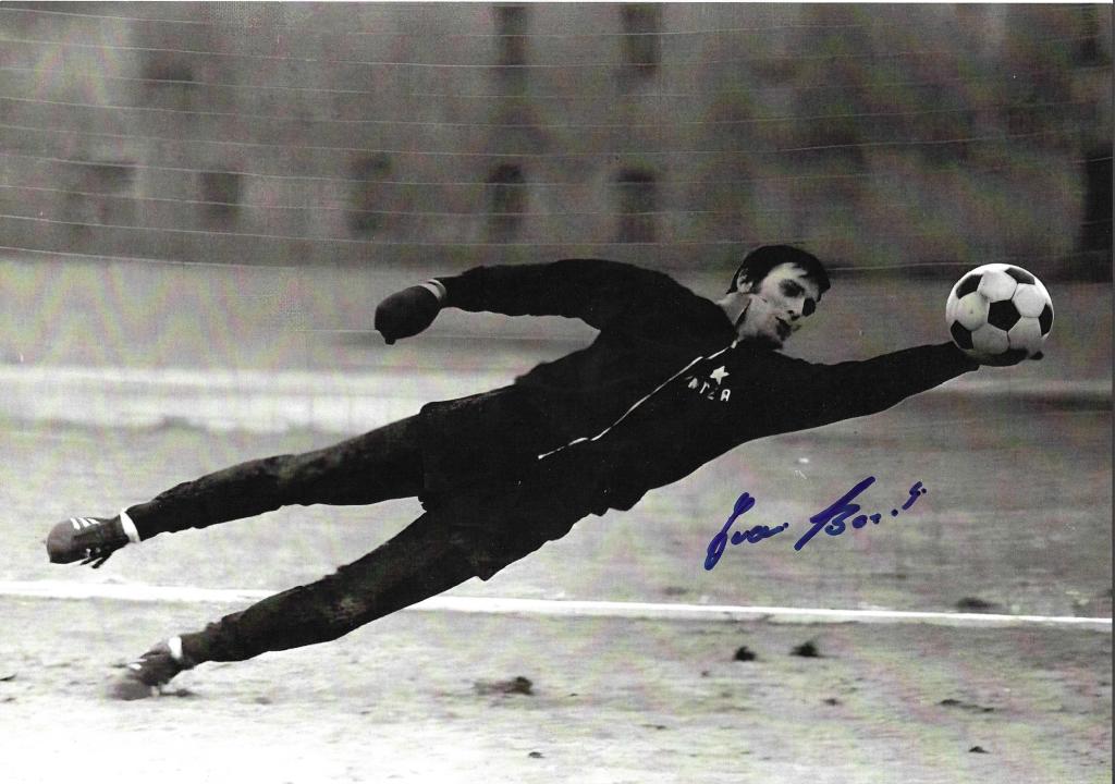 Autografo di Ivano Bordon su fotografia tuffo Inter bianco nero