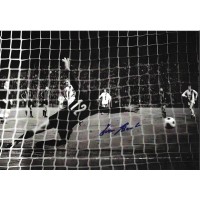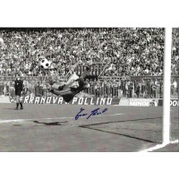 Autografo di Ivano Bordon, portiere dell'Inter. Fotografia in bianco e nero con tuffo in azione firmata in pennarello blu.