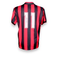 Autografo di Daniele Massaro, attaccante del Milan anni 80 e 90. Fotografia a colori in maglia rossonera firmata in pennarello nero.
