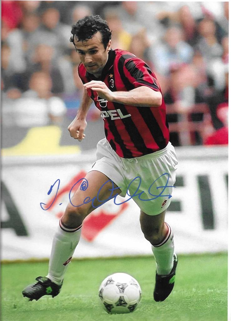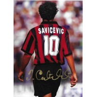 Autografo di Dejan Savicevic, il Genio del Milan. Fotografia a colori in maglia rossonera con sponsor Opel firmata in pennarello blu.