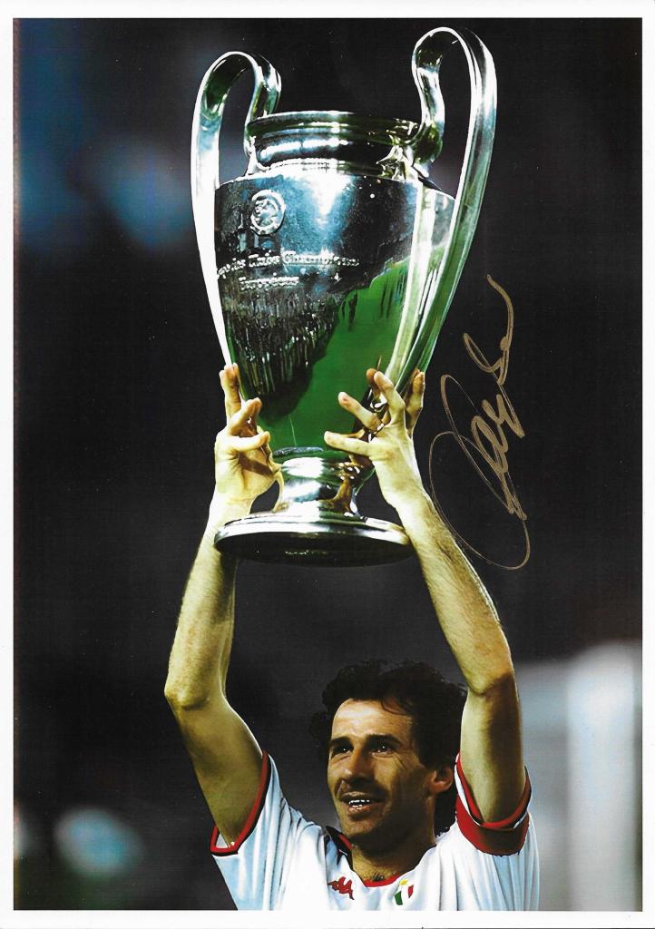 Autografo di Franco Baresi fotografia con Coppa dei Campioni.
