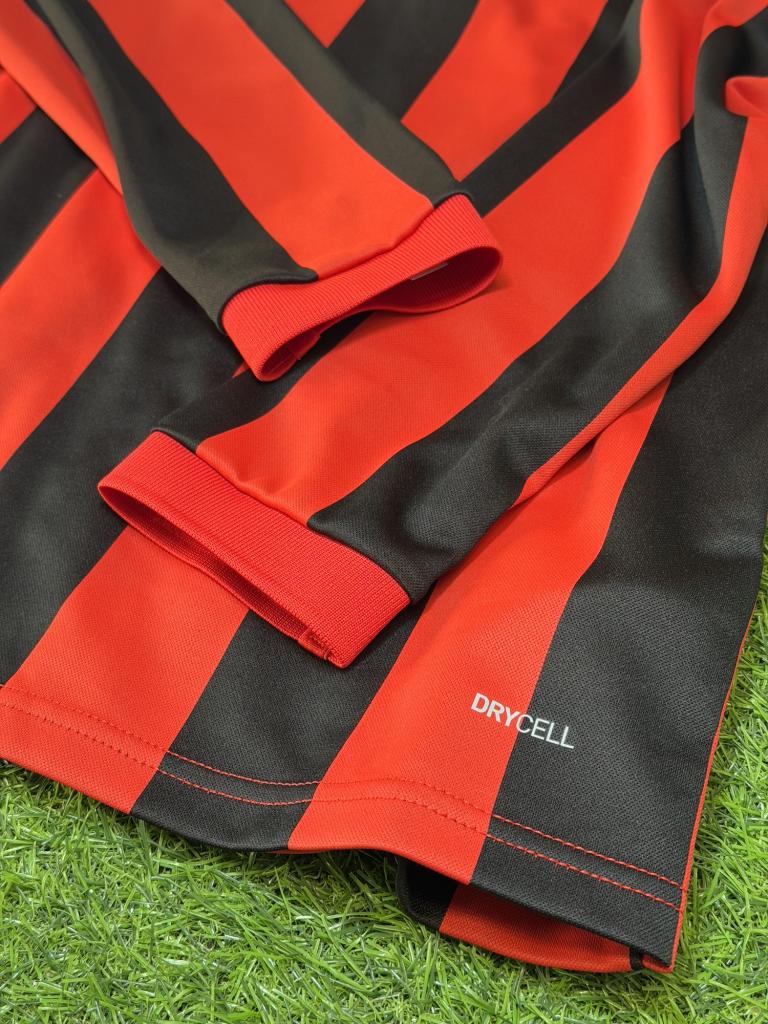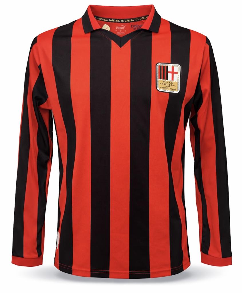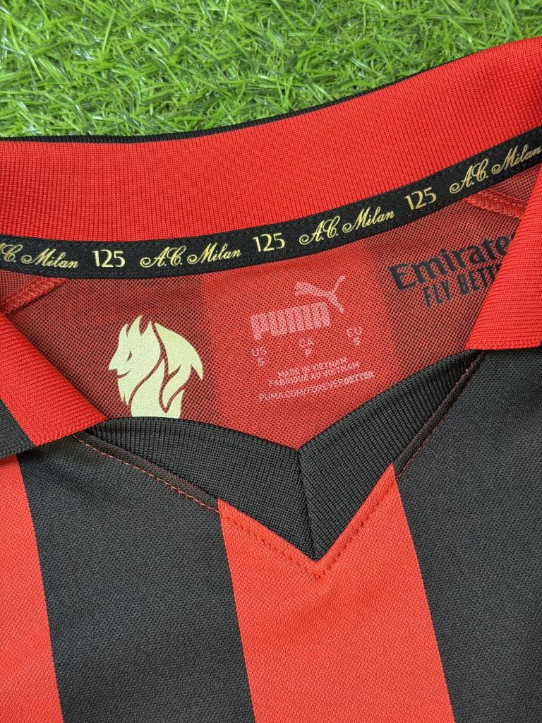 All’interno del colletto è riportata la dicitura celebrativa “AC Milan 125”, mentre sul retro troviamo il numero 6 in bianco con dettaglio commemorativo e firma autografa di Franco Baresi. Versione Store a manica lunga.
