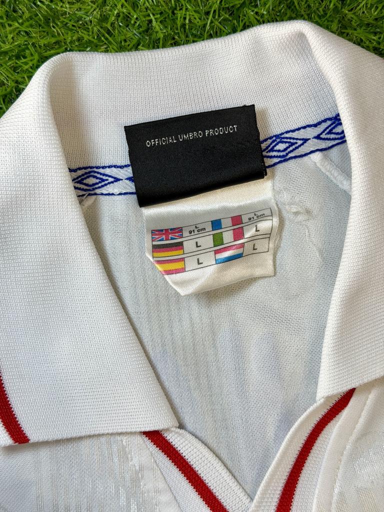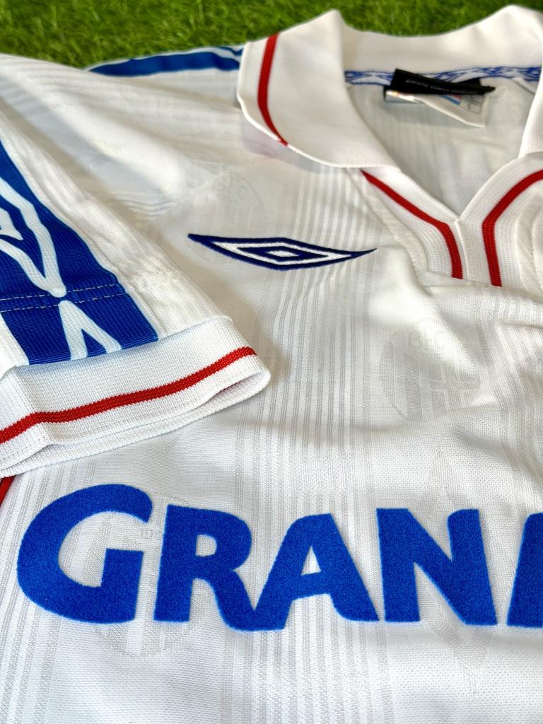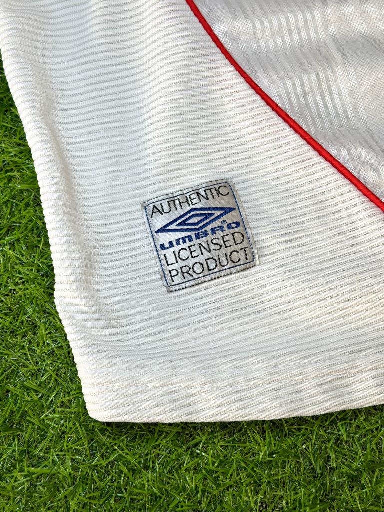 Sul retro è presente il nameset Signori con numero 10 in blu, impreziosito da firma autografa con dedica. Versione Store a manica corta, con tessuto in poliestere leggero e struttura traspirante tipica delle produzioni Umbro dell’epoca.