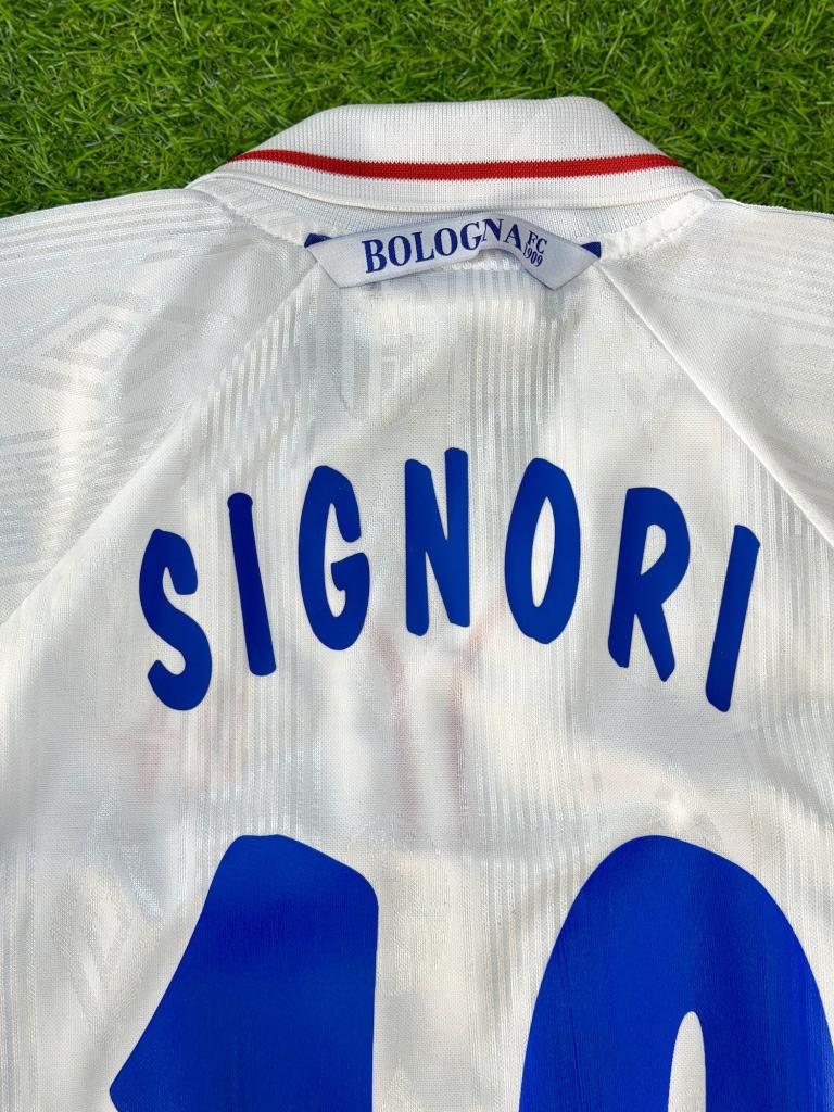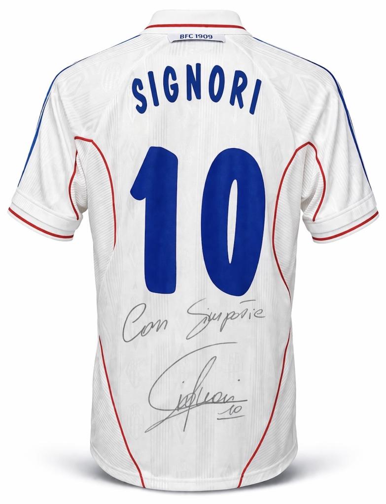 Autografo Beppe Signori su maglia Away del Bologna con personalizzazione Signori numero 10 stagione 2000/01.