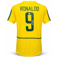 Autografo di Ronaldo Luís Nazário de Lima su maglia Brasile Home 2002 versione store, caratterizzata dal classico colore giallo.