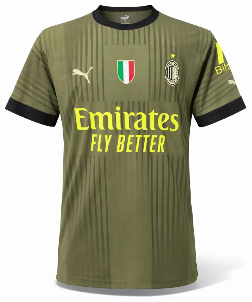 Autografo di Zlatan Ibrahimovic su maglia AC Milan store authentic Third stagione 2022/23, caratterizzata dall’inedita colorazione verde militare con dettagli neri e giallo fluo, realizzata da Puma.