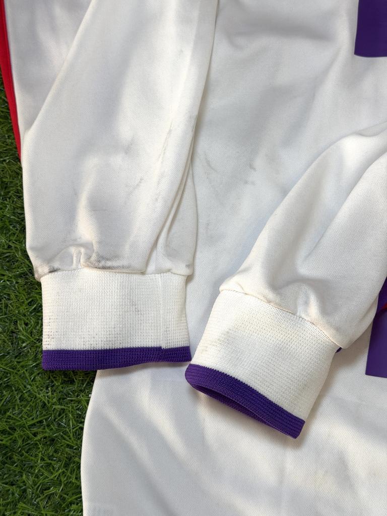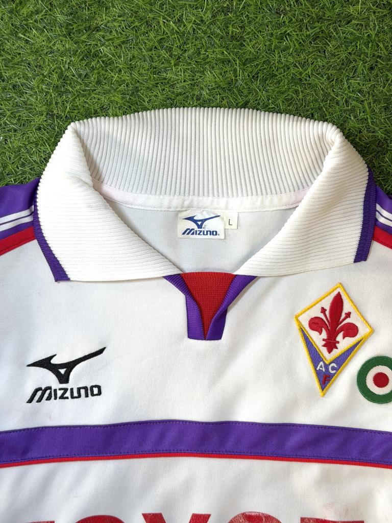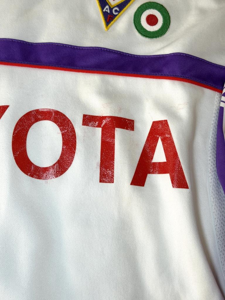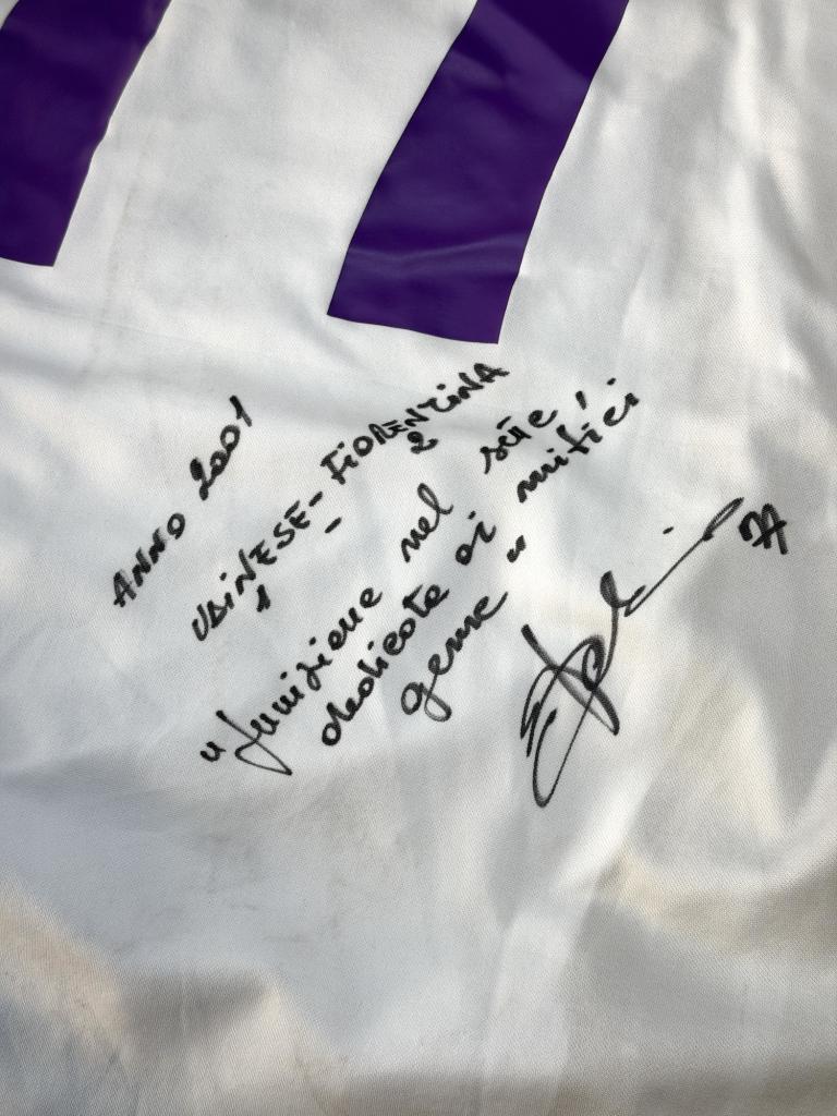 Maglia Player Issued della stagione 2001/02, rara e ricercata, resa ancora più significativa dalla presenza di autografo con dedica che ne certifica l’interesse per collezionisti e appassionati del club viola.