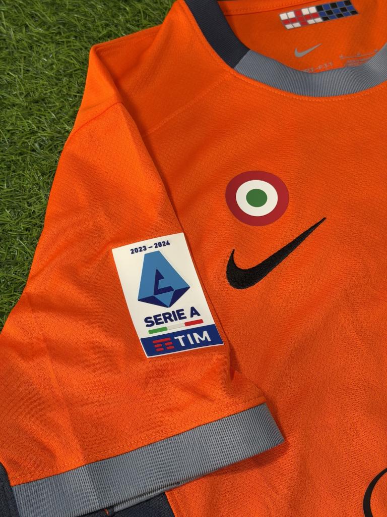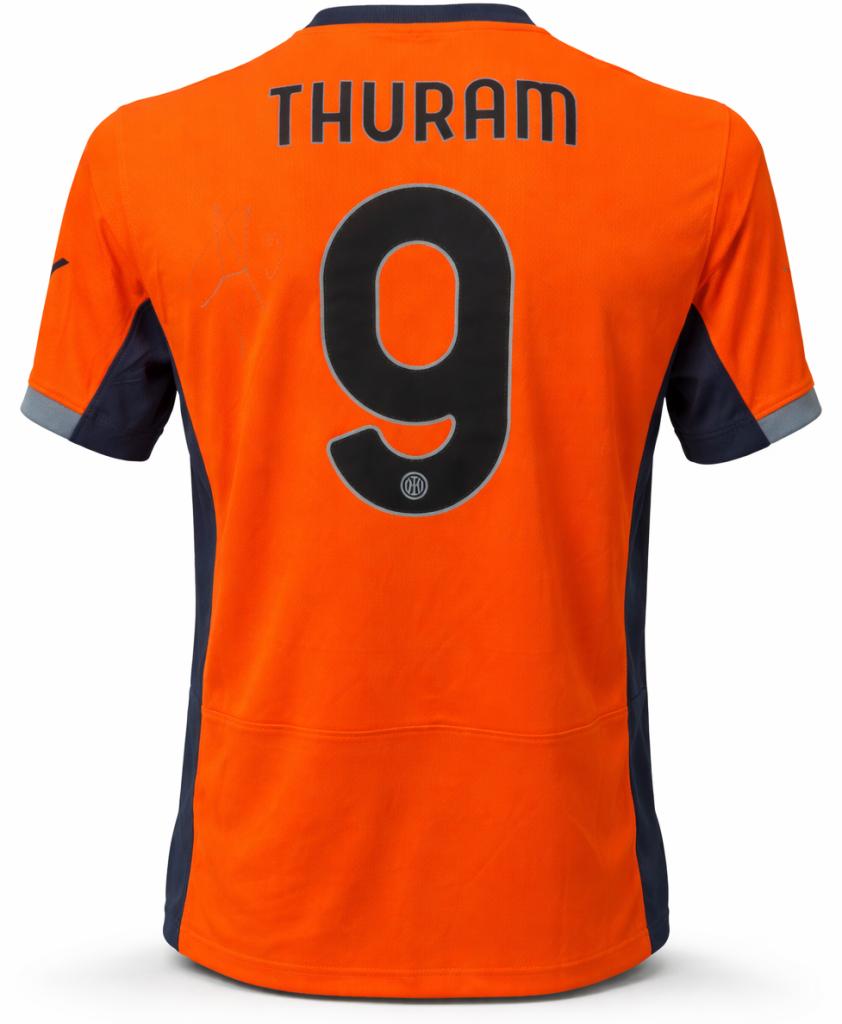 Autografo di Marcus Thuram su maglia Inter Third stagione 2023/24 versione Store, caratterizzata da un acceso colore arancione