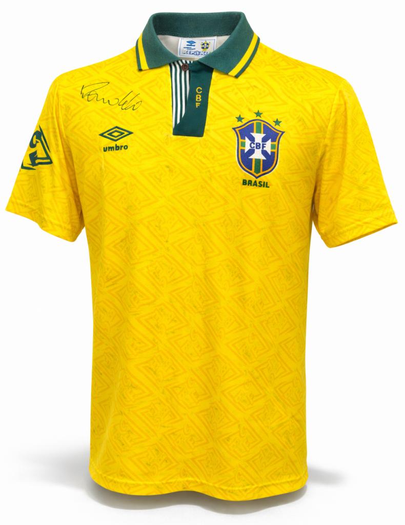 Autografo di Ronaldo Luís Nazário de Lima su maglia Brasile Home 1992/93 versione Replica, realizzata da Umbro.