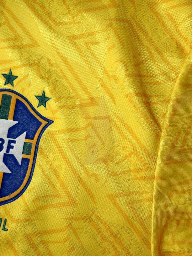 La maglia presenta stemma CBF con stelle sul petto e logo Umbro, in uno stile classico delle divise brasiliane dei primi anni ’90. L'autografo è apposta sul davanti della maglia, rendendo il capo un pezzo altamente rappresentativo del calcio internazionale.