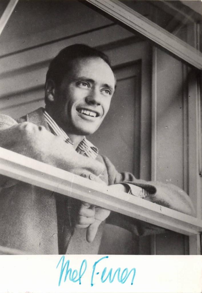 Autografo di Mel Ferrer, pseudonimo di Melchor Gastón Ferrer celebre attore, regista e produttore cinematografico statunitense. Sposò nel 1954 Audrey Hepburn ed insieme recitarono in Guerra e pace di King Vidor, film girato a Roma.