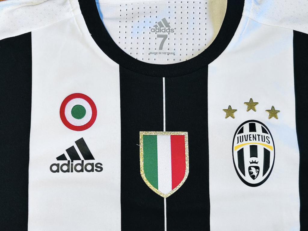 La maglia riporta la patch della vittoria della Coppa Italia, dello Scudetto con bordo oro, personalizzazione per la coppa Italia e quella identificativa della partita "Finale Tim Cup Roma 2017".
