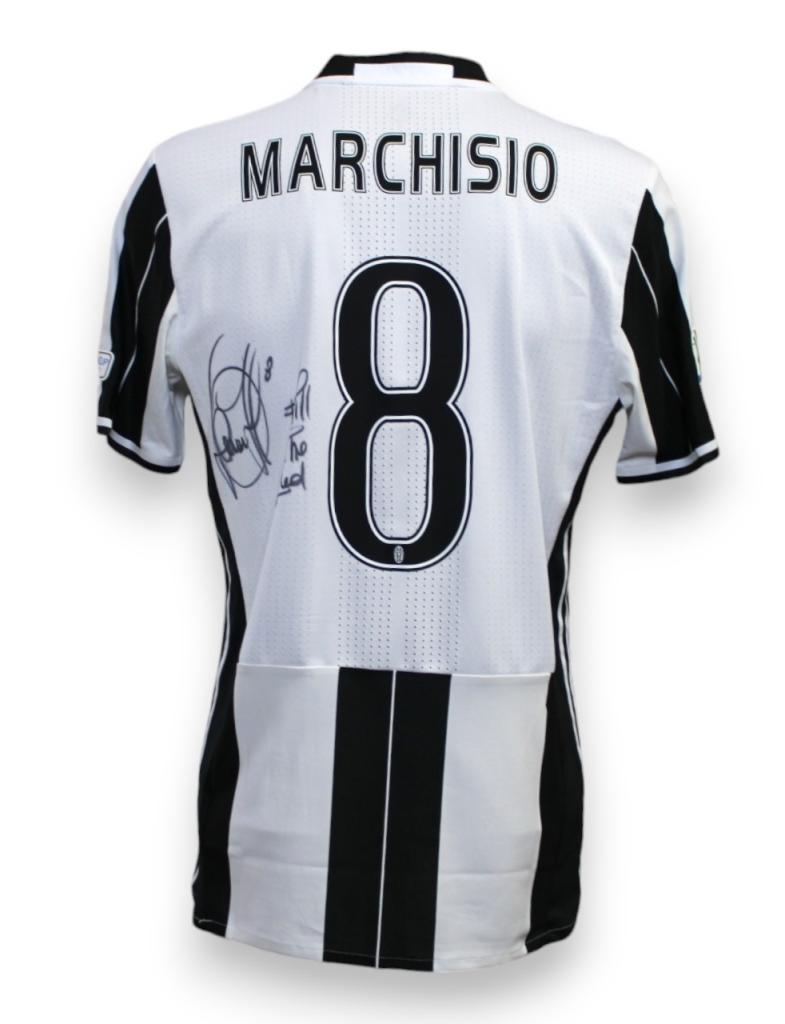 Maglia player Issued della Juventus per la stagione 2016-17, personalizzata per il "Principino" Claudio Marchisio per la Finale di Coppa Italia del 2017, disputata a Roma contro la Lazio e vinta dai bianconeri per 2-0 (gol di Dani Alves e Bonucci)