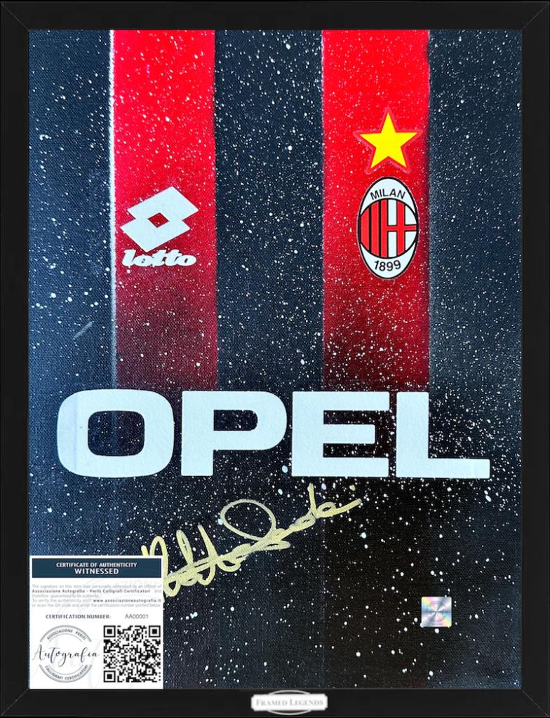 Firme Leggendarie:  Ogni tela è firmata da leggende del calcio che hanno fatto la storia, ed ogni autografo è una testimonianza tangibile della grandezza di questi campioni.