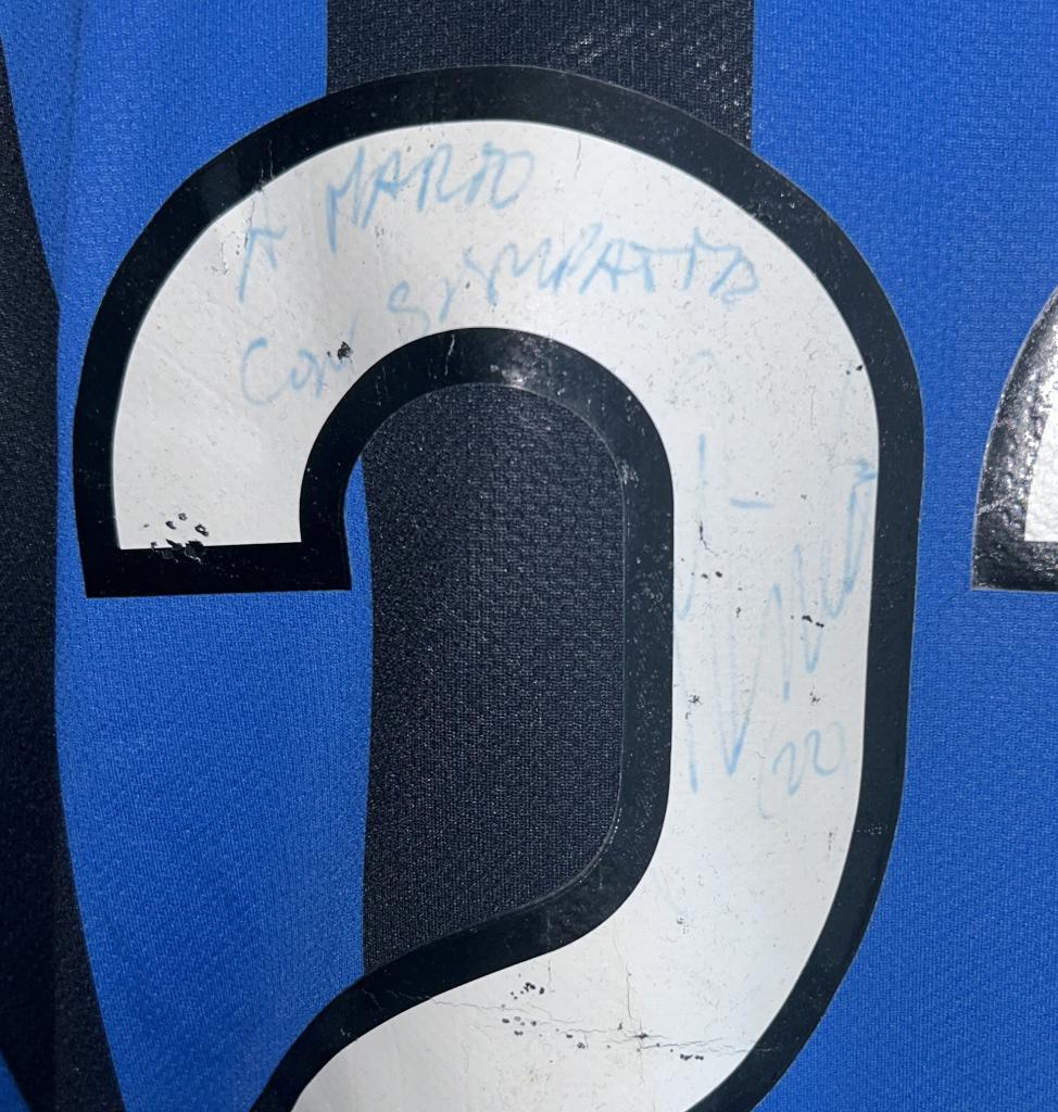 Milito ha apposto l'autografo sul retro, con dedica.