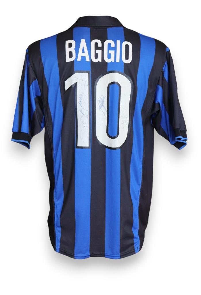 Autografo di Roberto Baggio su maglia Inter Store della stagione 1998-1999.