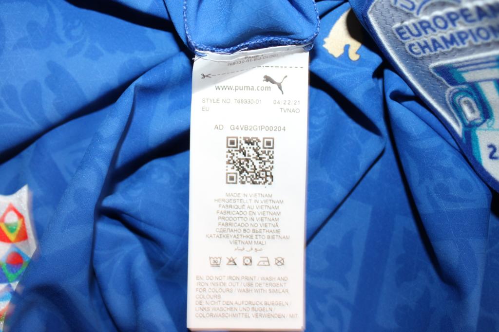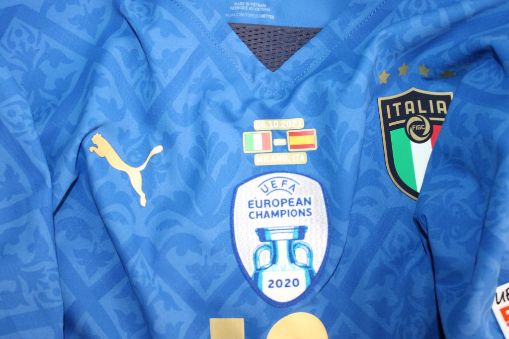 Sul petto, presente la patch European Champions 2020 e il matchday Italia-Spagna.