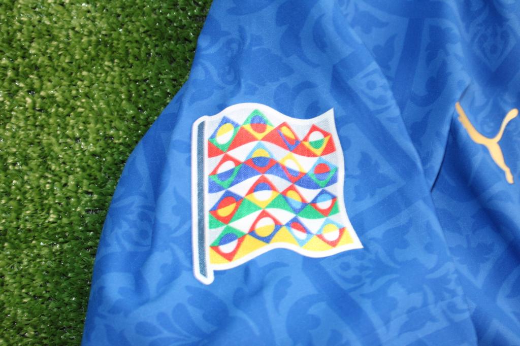 La maglia prodotta da Puma, riporta nelle maniche le patches "Nations League" e "Respect".