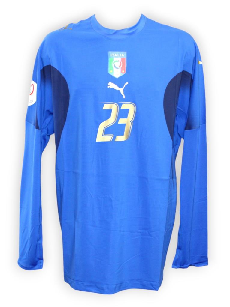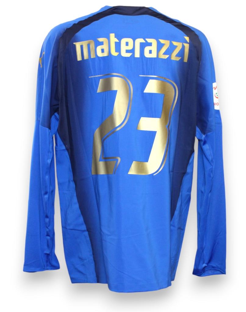 Maglia Italia Player Issued versione Home a maniche lunghe preparata per il calciatore Marco Materazzi per una competizione di Euro 2008.