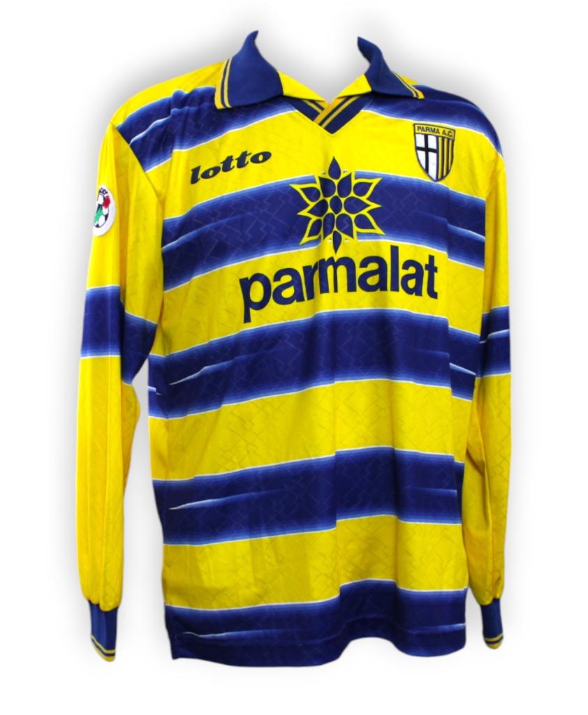 Probabilmente una delle divise più iconiche di tutta la Serie A, quella del Parma è una maglia tra le più richieste e collezionate di tutti gli anni ’90.