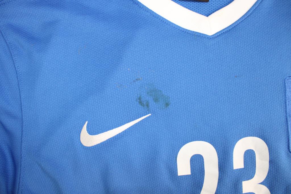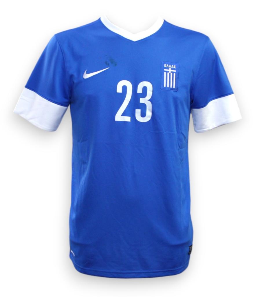 Maglia Player Issued versione Trasferta della Grecia preparata per il calciatore n° 23 Panagiotis Tachtsidis per l'annata 2013.