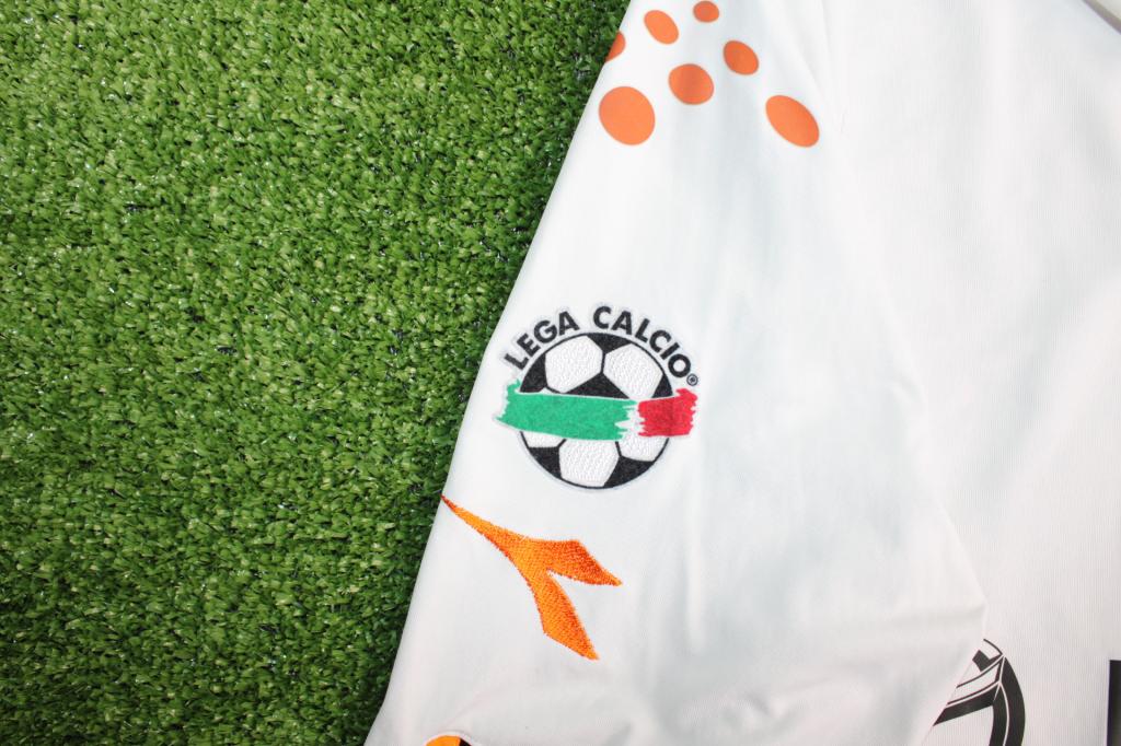 Maglia prodotta da Diadora. Presente sulla manica la patch della Lega Calcio Serie A e sul petto lo sponsor "Mazda".