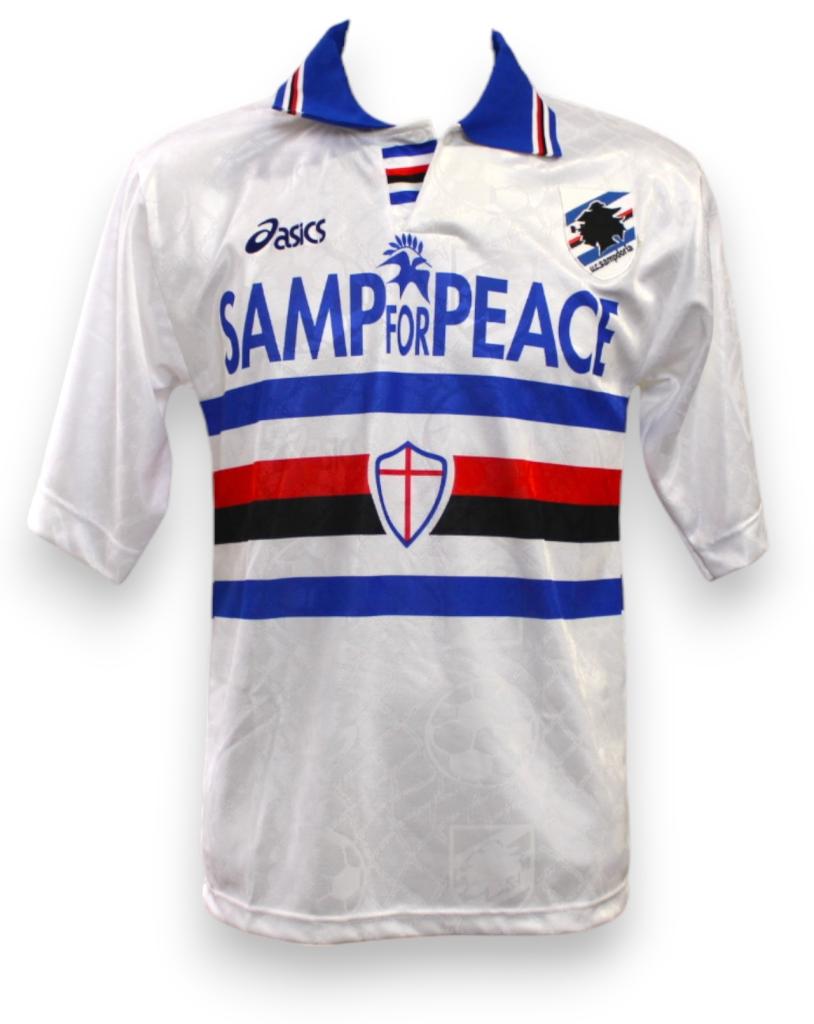 Sponsor "Samp for Peace" indossato in amichevole. Rara maglia da trasferta indossata nella stagione in cui Enrico Chiesa segnò la bellezza di 22 gol in 28 partite e la squadra si classificò all'8° posto in Serie A sotto la guida di Sven-Goran Eriksson (via Classic Football Shirts).