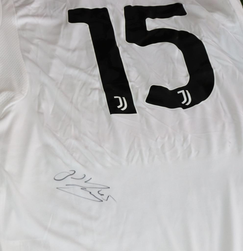 Il campione della Juventus Yildiz ha apposto sul retro il suo autografo.