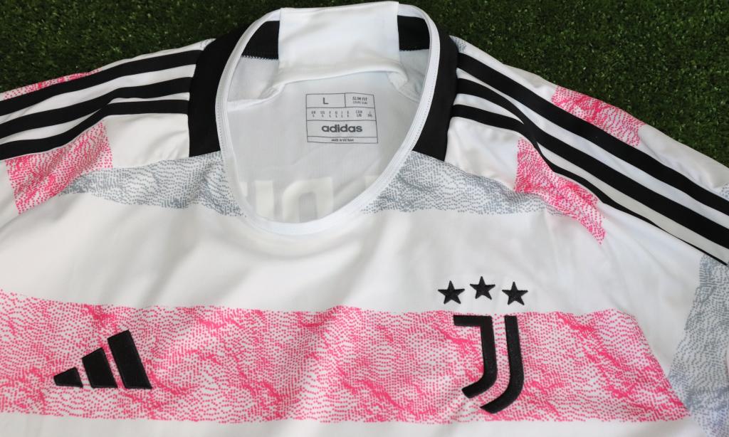 La divisa riporta lo stemma della Juventus sormontato dalle tre stelle e lo sponsor Jeep sul fronte.