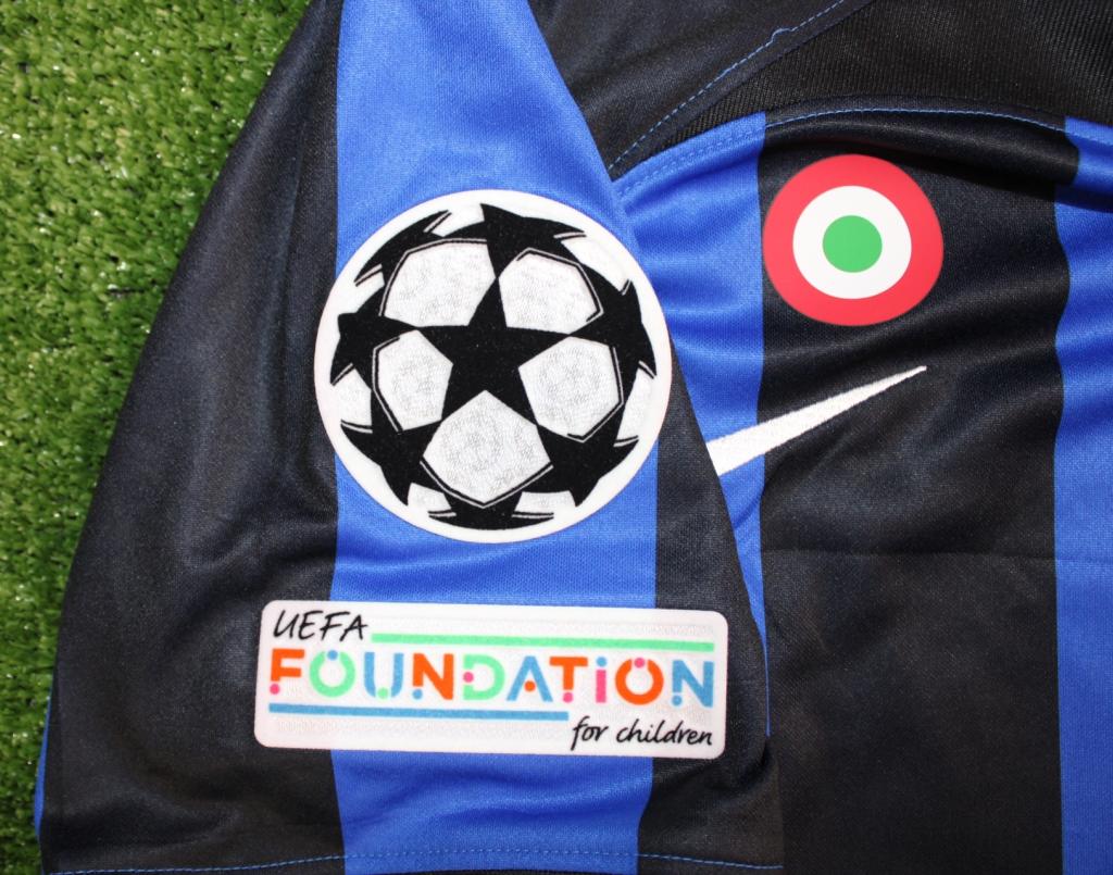 La divisa riporta le patch della Champions League e della Uefa Foundation sulla manica destra.