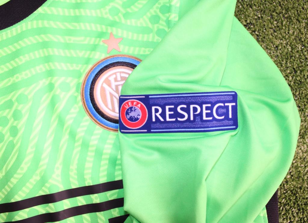 La divisa riporta le patch della Champions League sulla manica destra e della Uefa Respect sulla sinistra.