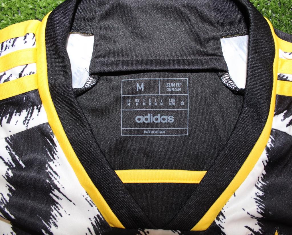 La maglia da calcio Adidas Juventus 2023-2024 home ha un look unico in nero, bianco e giallo. A far risaltare il kit sono i loghi gialli e l'esecuzione delle strisce.