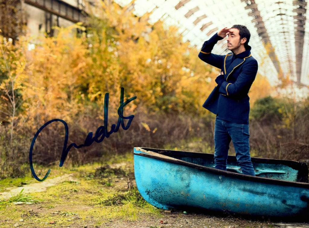 Fotografia con autografo di Antonio Diodato, conosciuto semplicemente come Diodato, cantautore italiano, vincitore del Festival di Sanremo 2020.